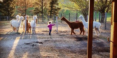 We have 6 children. We are firm believers in making this adventure something that the whole family can partake in. But, you don't need 6 kids to make an alpaca farm a success! But, they make great little farm hands, for sure! Bringing children up while alpaca ranching is an outstanding experience. Alpacas are gentle creatures and have an innate understanding of the fragility of children. Children growing up with alpacas learn respect and responsibility for other creatures, and are exposed to reproduction and cycles of the seasons helping them see how life grows and changes. Alpacas also provide a great 4-H project.